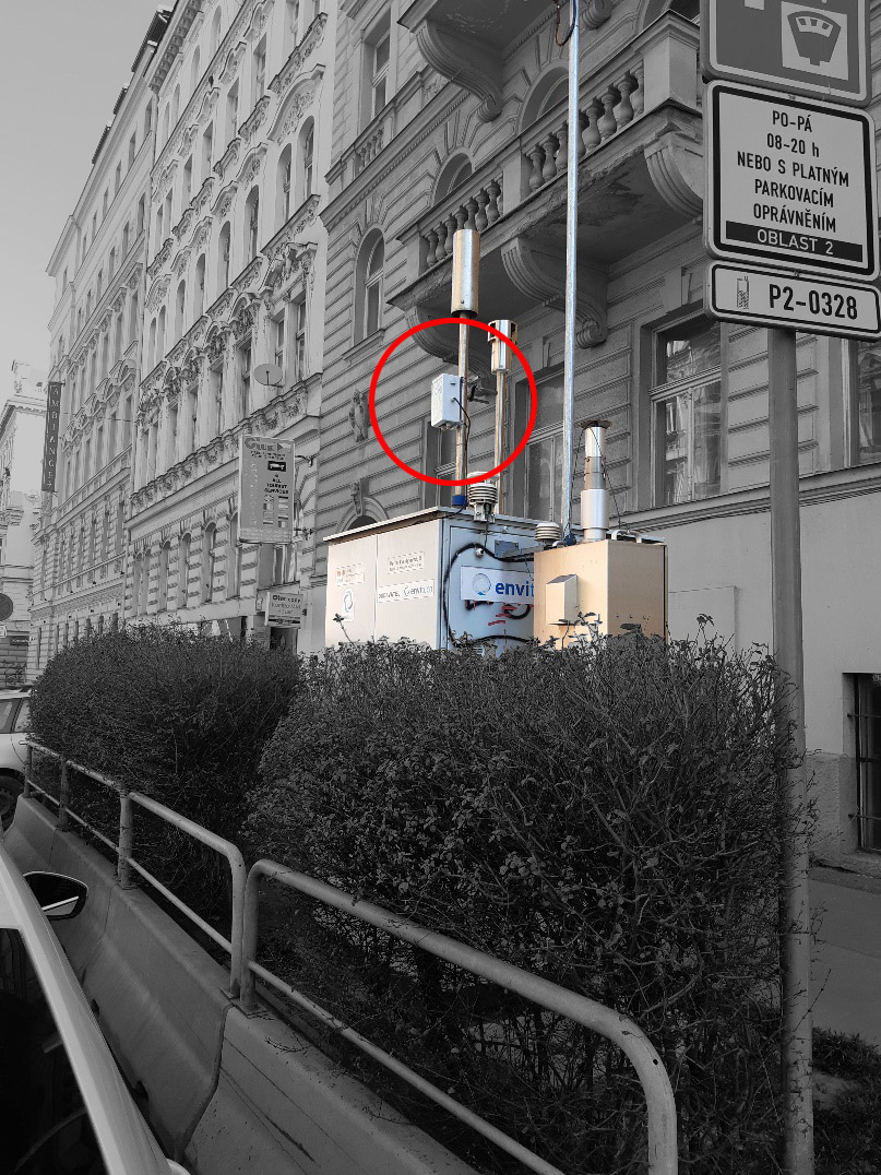 Obr. 7. Senzorická stanice enviSENS umístěná na dopravní referenční stanici Praha Legerova pro účely porovnání s referenčním měřením v podmínkách s vyššími koncentracemi.