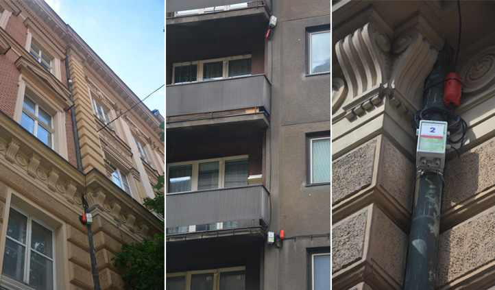 Obr. 2. Senzory kvality ovzduší instalované v rámci ulic Sokolská, Legerova a Rumunská. Foto: A. Šindelářová